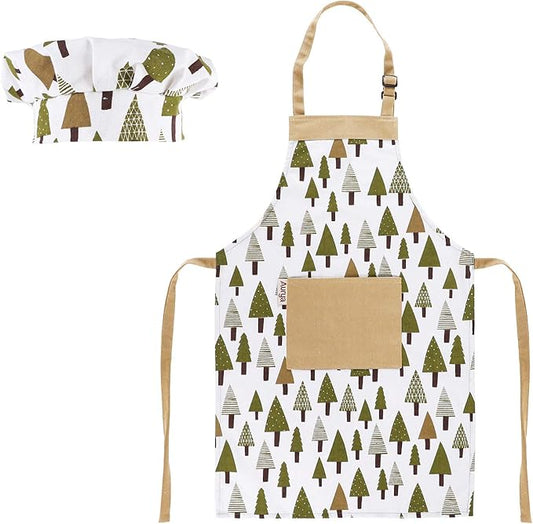 Kids Apron and Chef Hat Set-Adjustable Child Apron for Boys and Girls for Cooking Baking