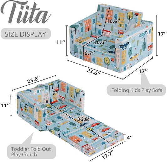 Tiita Kids Couch Fold Out, Toddler Sofa Bed Chairs, 2-in-1 Kids Couch Plush Chair, Folding Children Sofas to Lounger, Toddler Comfy Armrest Chair Bed Sofa for Girl or Boy, Car