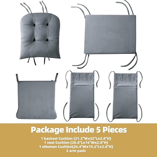 HOMBYS 5 PCS Glider Rocker Replacement Cushions with Storage Side Pocket,Linen-Like Fabric, Foam & Microfiber Filling, Non-Slip & Washable,Thickened & Supportive for Glider Rocking Chair, Grey