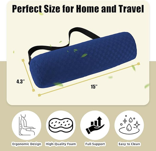 Lumbar Roll Pillow for Lower Back, Lumbar Support Foam Roll Cushion with Pillowcase and Upgraded Strap for Office, Chair, Car, Seat Pain Relief & Improving Posture (Dark Blue, Long-15*4.3'')