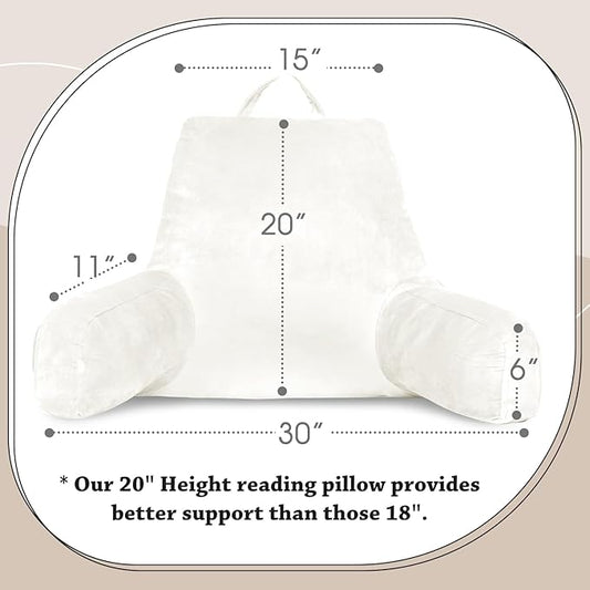 LOVTEX Reading Pillow with Removable Cover, Back Pillow for Sitting Up in Bed with Arms and Pockets, Bed Rest Pillow Adult, 20 x 15 Inches(White)
