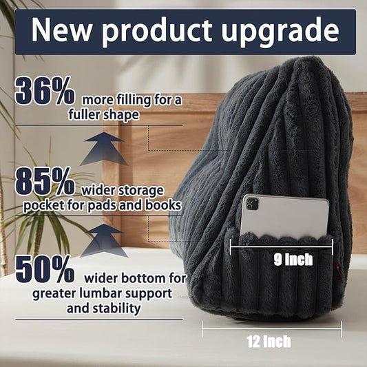 Reading Pillow for Sitting in Bed Adult, Standard Reading Pillow with Memory Foam, Back Pillow for Bed Sitting Up with Extend Arms, Bed Reading Pillow, Black