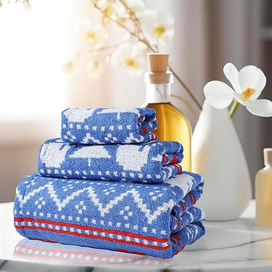 Luxury Blue Christmas Snowman Bath Towel Sets for Boy Girl Gift , 1 Bath Towels 1 Hand Towels 1 Washcloths 100% Cotton Ultra Soft Fluffy Highly Absorbent Double Sided Pattern Towel for Face Body