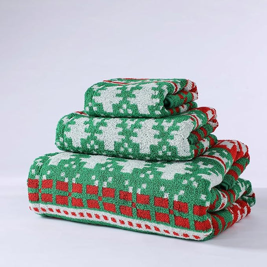 Luxury Christmas Tree Pine Green Bath Towel Sets for Bathroom, 1 Bath Towels 1 Hand Towels 1 Washcloths 100% Cotton Fluffy Highly Absorbent Double Sided Pattern Towel for Women Kids Elderly