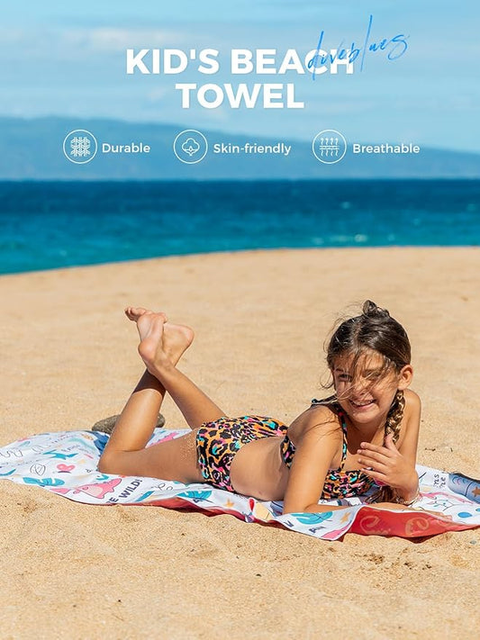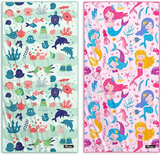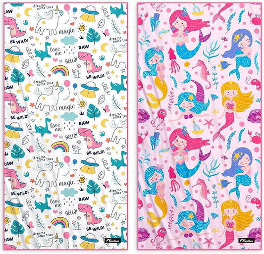 Kids Beach Towels 2 Pack 60''x30'', Quick Dry, Sand Free, Compact, Lightweight, Absorbent, Girls & Boys Large Microfiber Towels Gifts for Pool, Swim, Cruise Essentials