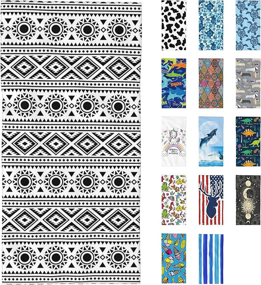 Microfiber Beach Towel, Traditional Ethnic Black White Geometric Beach Towels for Women Men, Extra Large 29.5” X 59”, Quick Drying Lightweight Sand Free Bath Swim Towel