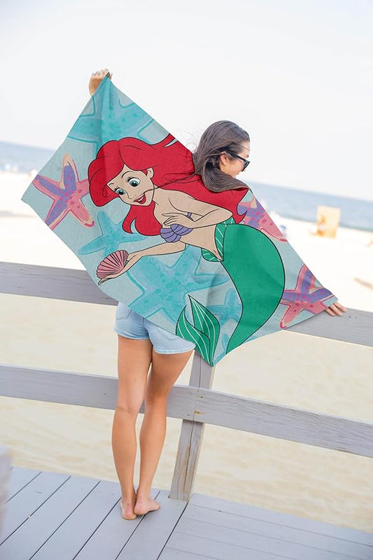Disney The Little Mermaid Kids Bath Pool Beach Towel - Princess Ariel Super Soft & Absorbent 100% Cotton Towel, Measures 28 x 58