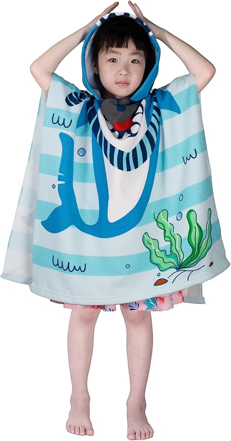 Hooded Kids Beach Towels - Toddler Bath Towel Girls Boys Swim Cover-ups for Ages 1 to 6 Kids Pool Towels Quick Dry Lightweight Soft Microfiber Poncho Towel 24x23(Shark SkyBlue)