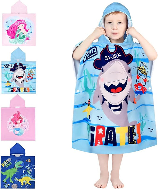 Kids Hooded Beach Towels for Boys Girls, Toddler Soft Absorbent Thickened Microfiber Bath Towel Swim Pool Towels Baby Quick Dry Lightweight Poncho Towel Cover-ups for 0-7 Years Old