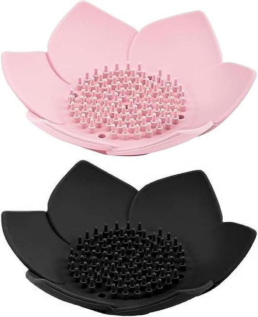 Draining Silicone Soap Dishes with Lotus Flower Shape Flexible (CushionPad-1Black1Pink)