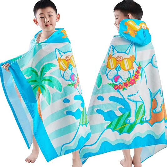 Wowelife Kids Beach Towels, Hooded Towels for Kids, Poncho Towel Wrap, Premium 100% Cotton Soft and Breathable, Extra Large 50"x30", Multi Use for Bath Pool Beach Swim Bathroom