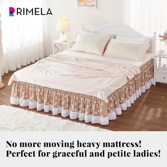 RIMELA Bed Skirt Queen Size 15 Inch Drop, Wrap Around Elastic Bedskirt Solid Microfiber Luxury Hotel Quality Fabric, Easy to Install Machine Washable Wrinkle & Fade Resistant, Beige Yellow