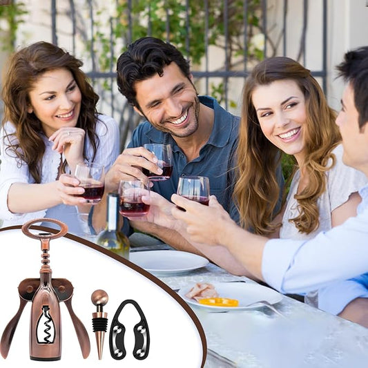 Wine Opener with Leak Proof Wine Vacuum Stopper, Zinc Alloy Premium Wing Corkscrew Wine Bottle Opener with Multifunctional Bottles Opener