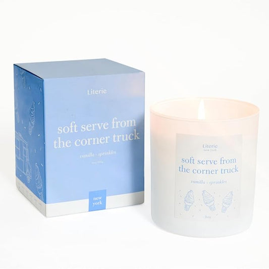 NYC Inspired Scented Candle: Soft Serve from The Corner Truck - Vanilla & Sugar Scent, 9oz, 50 Hour Burn, Vegan Soy & Coconut Blend Candle for Home Decor, Gift for Women & Men