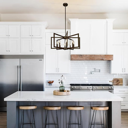 8-Light Modern Farmhouse Black Geometric Chandelier, Adjustable Height Dining Room Light Fixtures Over Table, Large Industrial Metal Chandeliers for Dining Room Kitchen Island Entryway