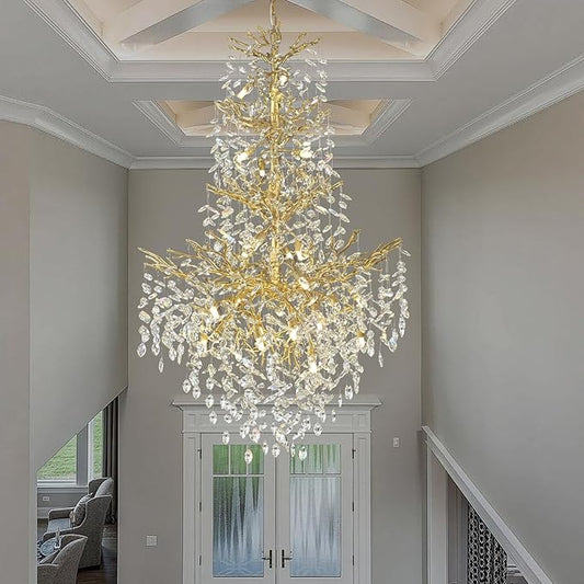 H61'' Gold Crystal High Ceilings Chandeliers Staircase Chandeliers Modern Crystal Tree Branch Chandelier, D40'' Foyer Chandelier for High Ceiling Luxury Large Living Room Chandelier, 23-Lights
