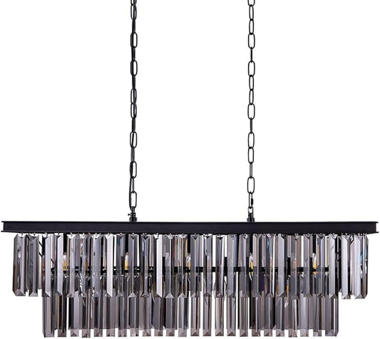Wellmet Black Crystal Chandelier 40 inch for Dining Room, 11-Light Modern Linear Chandelier Ceiling Hanging, Farmhouse Chandeliers Light Fixture for Living Room, Dining Table, Bedroom, Kitchen Island