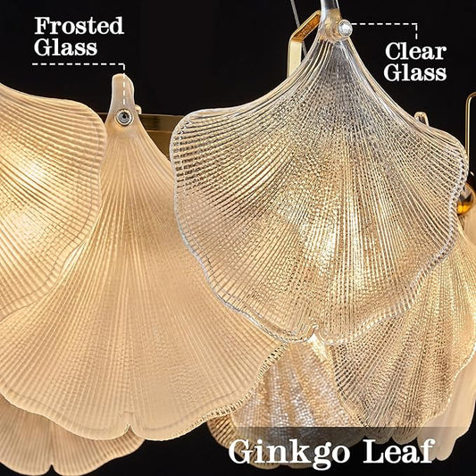 Gold Round Chandelier 8 Light Ginkgo Crystal Chandelier Light Fixture Hammered Glass Vintage Chandelier for Living Room Dining Room Bedroom High Ceiling Foyer,24in