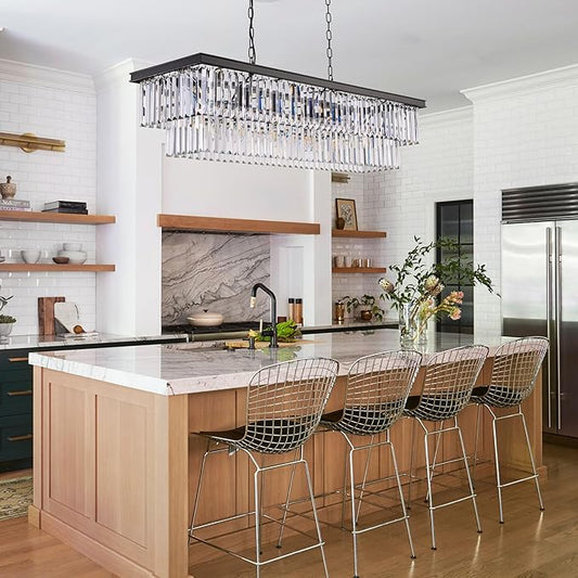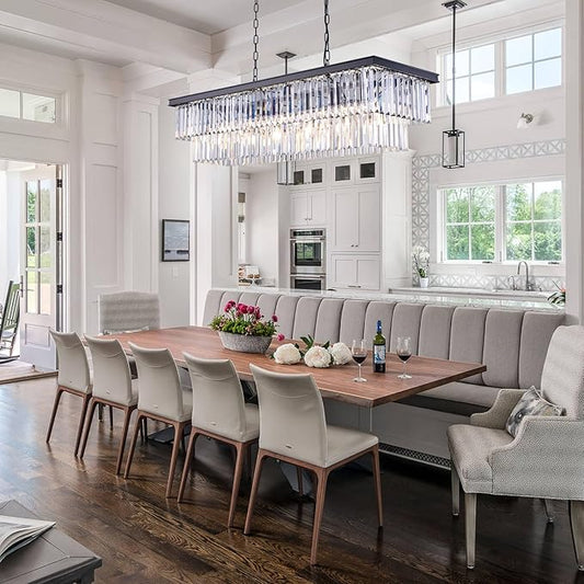 Wellmet Crystal Chandelier 47-inch, 11-Light Modern Rectangular Black Chandelier Ceiling Hanging for Dining Room, Linear Chandeliers Light Fixture for Living Room, Bedroom, Kitchen Island, Pool Table