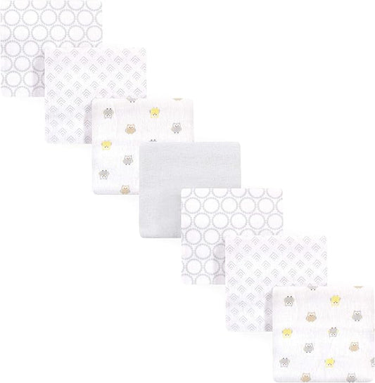 Luvable Friends Unisex Baby Cotton Flannel Receiving Blankets, Owl 7-Pack, One Size