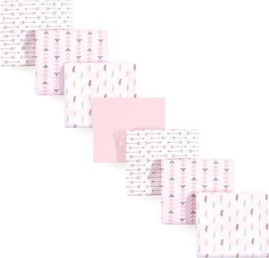 Luvable Friends Unisex Baby Cotton Flannel Receiving Blankets, Girl Feathers 7-Pack, One Size