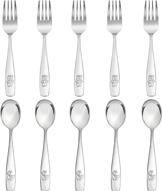 Kids Silverware Stainless Steel Set of 10 Toddler Utensils Forks and Spoons - Dishwasher Safe Kids Flatware Set Children's Safe Cutlery Set