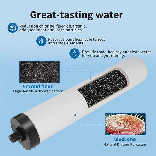 10'' Replacement Ceramic Candle Water Filters for Kitchen 4-Stage Countertop Filter,Washable Candle Cartridge and Replacement House Dome Ceramic Filtration,1-Pack