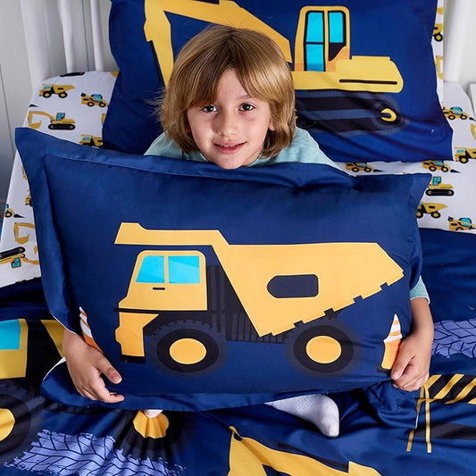 Joiedomi Kid Twin Comforter Set - 5 Piece Construction Vehicle Bedding Set for Boys/Girls - Super Soft Microfiber Bed in a Bag with Comforter, Sheets, Pillowcase & Sham