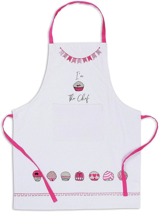 AMOUR INFINI Cupcakes Baking 3-Piece Kitchen Set Cotton Kid's Aprons, Oven Mitts, and Chef Hats Kitchen Play,Cooking,Grilling,Baking Gift for Girls, Boys & Junior Chefs Heat Resistant Reusable