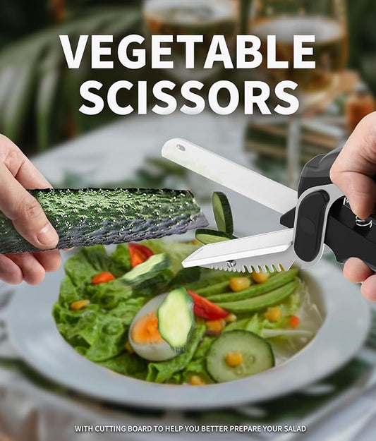 Vegetable Cutter, Kitchen Scissors All Purpose for Cutting Meat,Vegetable,Fruit,Salad,Chicken,Sharp Heavy Duty Shears with Cutting Board,Dishwasher Safe,Food Scissors Veggie Chopper Kitchen Gadgets