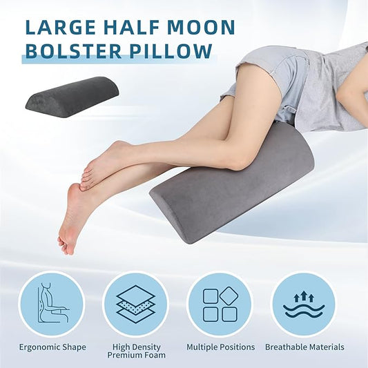 Under Knee and Leg Pillow for Back Sleeping - Half Moon Bolster Pillow for Lower Back and Head, Semi Roll Round Lumbar Support Pillow for Side, Back, Stomach Sleepers (Darkgrey)