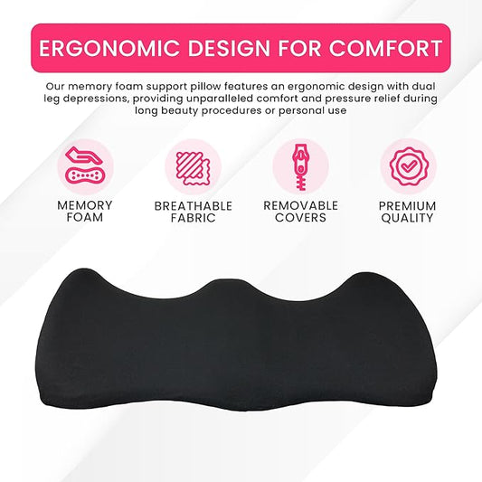Ergonomic Leg Pillow for Leg and Knee Support | Premium Memory Foam Knee Pillow for Beauty Salon Or Home | Bolster Pillow for Legs Helps Comfort Enhancement, Legs & Lower Back Pain Relief (Black)