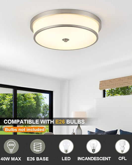 16 inch Flush Mount Ceiling Light, 3-Light Close to Ceiling Light Fixtures with Brushed Nickel Finish for Livingroom Bedroom Kitchen Diningroom