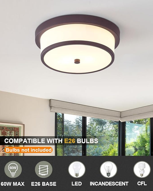12 inch Flush Mount Ceiling Light, 2-Light Close to Ceiling Light Fixtures with Oil Rubbed Bronze Finish for Bathroom Bedroom Kitchen Hallway (Oil Rubbed Bronze)