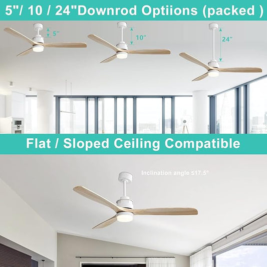 Sofucor 60" Ceiling Fan with Lights Remote Control, 3 Poles for Indoor Outdoor Ceiling Fan with Remote, Wood Ceiling Fan with 3 Color Temperature & Adjustable Brightness, Light Wood Grain