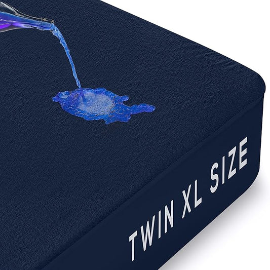 Utopia Bedding Waterproof Mattress Protector Twin XL Size, Premium Terry Mattress Cover 200 GSM, Breathable, Fitted Style with Stretchable Pockets (Navy)