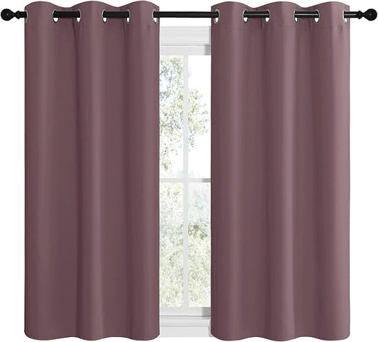 NICETOWN Dry Rose Room Darkening Curtains for Kitchen, Set of 2, 42 inches Wide by 48 inches Long, Window Treatment Thermal Insulated Solid Grommet Room Darkening Curtains/Drapes for Bedroom