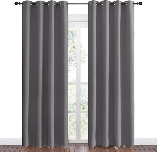 NICETOWN Bedroom Blackout Curtains Panels, 1 Pair, 55 inches by 102 Inch, Grey, Triple Weave Energy Saving Thermal Insulated Solid Grommet Blackout Draperies for Patio