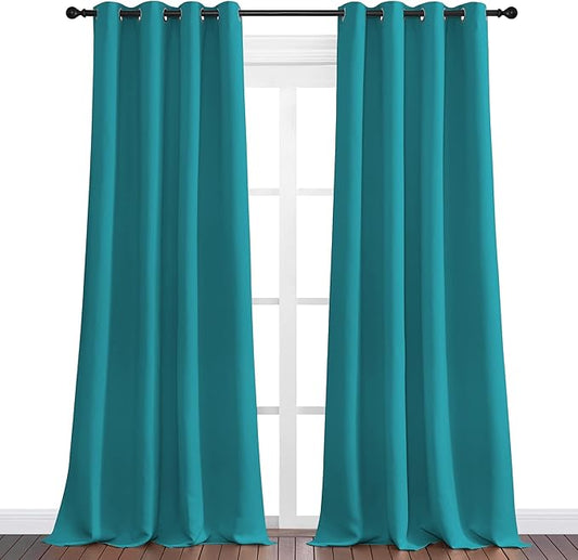 NICETOWN Thermal Curtains for Kids Room, Window Treatment Thermal Insulated Solid Grommet Blackout Drape Panels for Bedroom (Teal Blue, Set of 2, 34 by 84 inches)