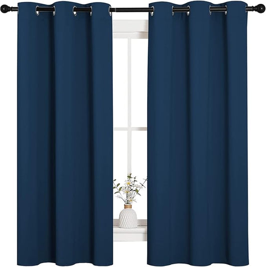 NICETOWN Room Darkening Curtains 63 inch Length 2 Panels, Thermal Insulated Grommet Blackout Curtains for Modern Casual Elegant Bedroom Kids Room Theme Decoration (Moroccan Blue, 2 Pieces, W42)