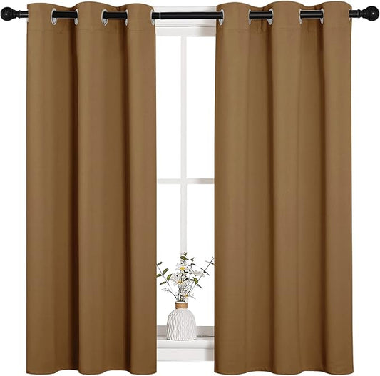 NICETOWN Sleek Blackout Curtains 45 inches Length for Small Windows, Noise Reducing and Block Draft Panels for Door Doorway Laundry Office Luxury Decor Theme (2 Panels, Gold Brown, W34 x L45 -Inch)