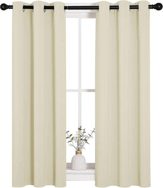 NICETOWN Room Darkening Curtain Panels for Living Room, Thermal Insulated Grommet Room Darkening Draperies/Drapes for Window (Beige, 2 Panels, W29 x L45 -Inch)