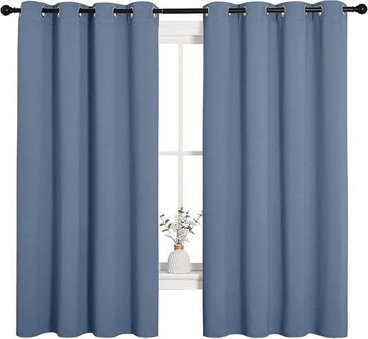 NICETOWN Blackout Curtains for Kitchen Window, Sound & Heat & Cold Reducing Curtains & Drapes for Kids Bedroom, Home Decoration Draperies (Stone Blue, 55" Wide x 68" Long, 2PCs)