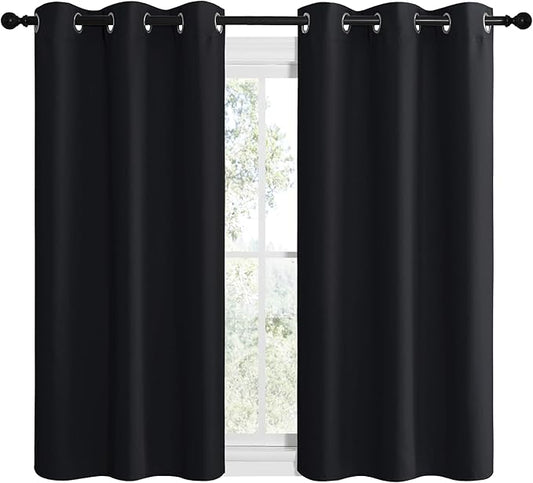 NICETOWN Halloween Blackout Draperies Window Curtain Panels, Autumn/Winter Thermal Insulated Solid Grommet Blackout Curtains/Drapes for Cafe (Set of 2, 42 inches by 48 inches, Black)