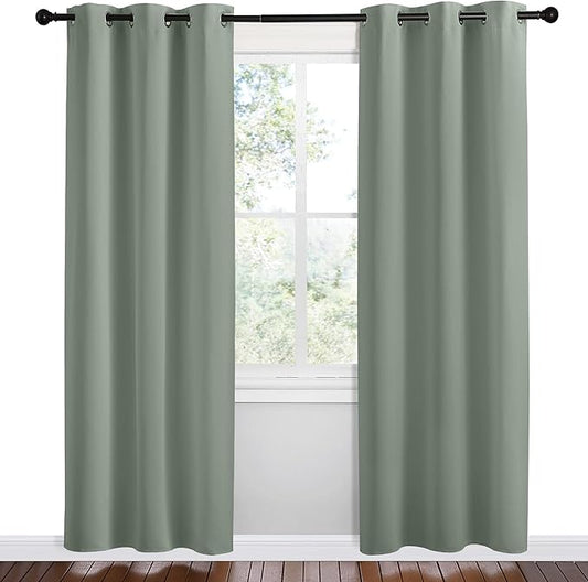 NICETOWN Greyish Green Room Darkening Curtains for Kitchen, Set of 2, 42 inches Wide by 78 inches Long, Window Treatment Thermal Insulated Solid Grommet Room Darkening Curtains/Drapes for Bedroom