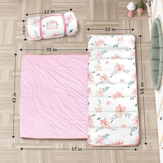 Nap Mat- Toddler Nap Mat with Pillow & Fleece Blanket- 55''*35''*3'' Nap Mat for Toddlers- Nap Mats for Preschool, Daycar