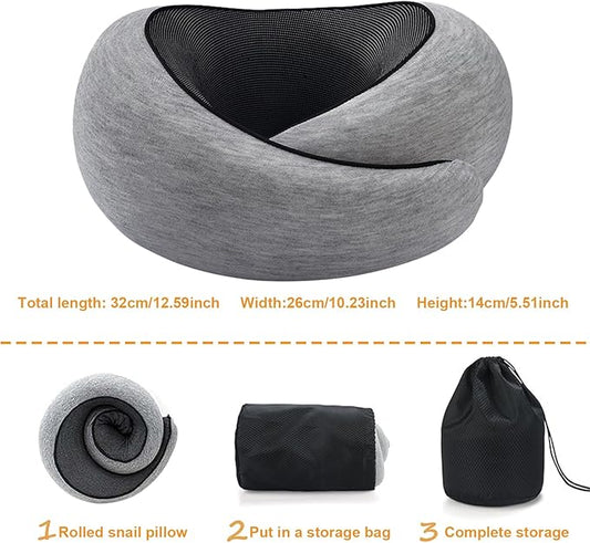 Travel Pillow, Best Memory Foam Neck Pillow Head Support Soft Pillow for Sleeping Rest, Airplane Car & Home Use (1Grey)