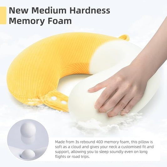 Travel Pillow, Neck Pillow Airplane Memory Foam with Sleep Mask Earplugs, Soft & Support Fleece Airplane Pillow for Travelling Plane Car Train Home Use, Yellow