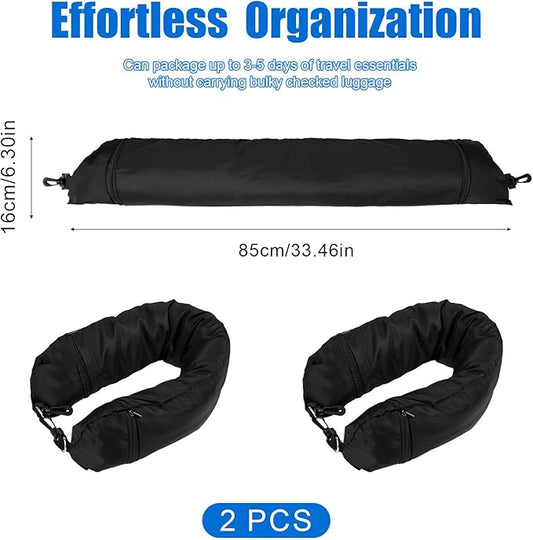 2pcs Stuffable Travel Pillows with 2pcs Adjustable Long Straps, Transformable Neck Pillow Case Cover Adults for Going Out by Car or Plane, No Pillow Filler (Black)