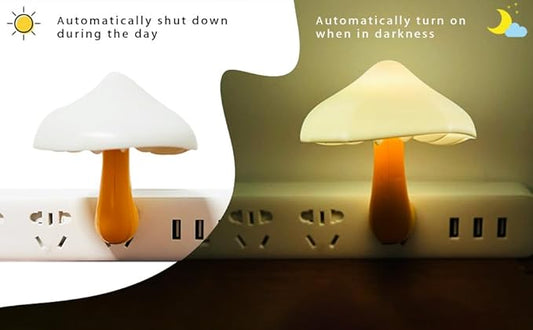 ZEZHOU Sensor LED Night Light - Plug in Wall Mushroom Nightlight, Energy Saving Lamp Cute Mushroom Night Lights for Adults Kids Bedroom, Bathroom, Toilet, Stairs, Kitchen, Hallway Corridor, Warm White